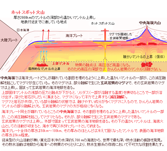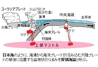 | 3)冷山のマグマ 冷山のマグマが「沈み込み帯の背弧的な特徴を持つ可能性がある」と言うことは、地球内部のマグマ生成環境に関する非常に重要な情報を含んでいる。海洋プレートが大陸プレートの下に沈み込む日本列島は、典型的な『沈み込み帯』の上に存続している。特に八ヶ岳は本州中部(長野県)に位置し、プレート境界の複雑な接点上にある。 太平洋プレートPacific Plateは、日本列島の東側から西へ沈み込む海洋プレートでもあり、東北地方の沿岸部の日本海溝や北海道の沿岸部の千島海溝の下で沈み込む。接する北米プレートNorth
